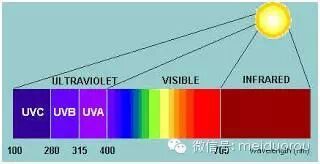 紫外線是不可見光。根據(jù)其波長,由短到長分為 UVC、UVB、和UVA。紫外線先在太陽光中含量為4%。其余96%為可見光。