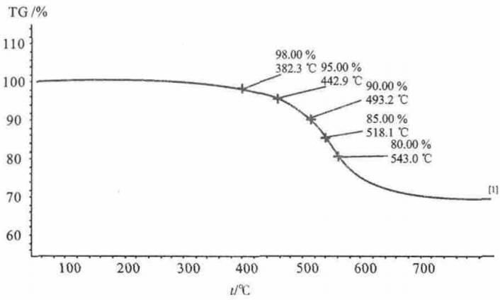 圖5 封裝膠熱分解曲線(xiàn)(TGA 譜圖)